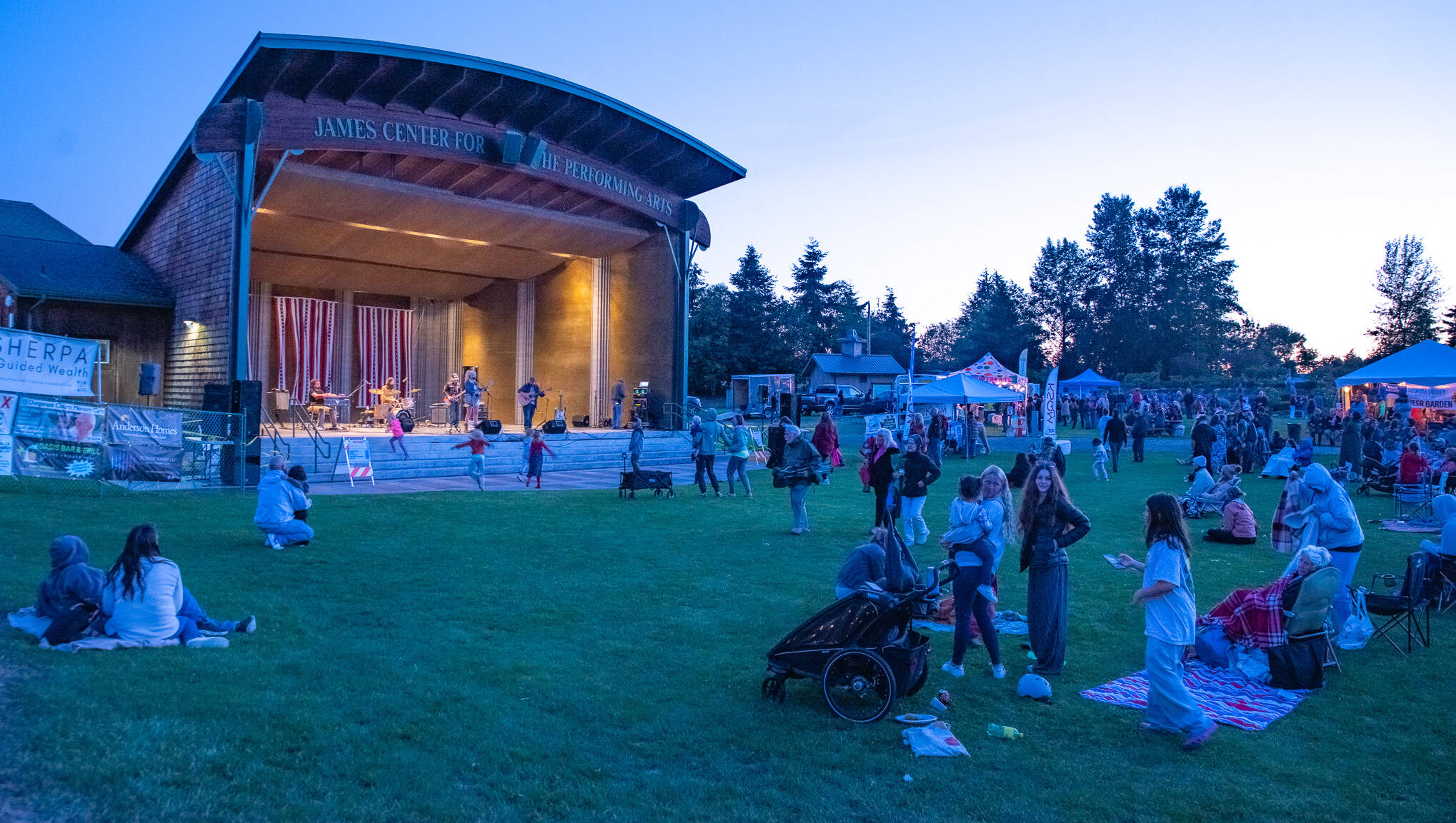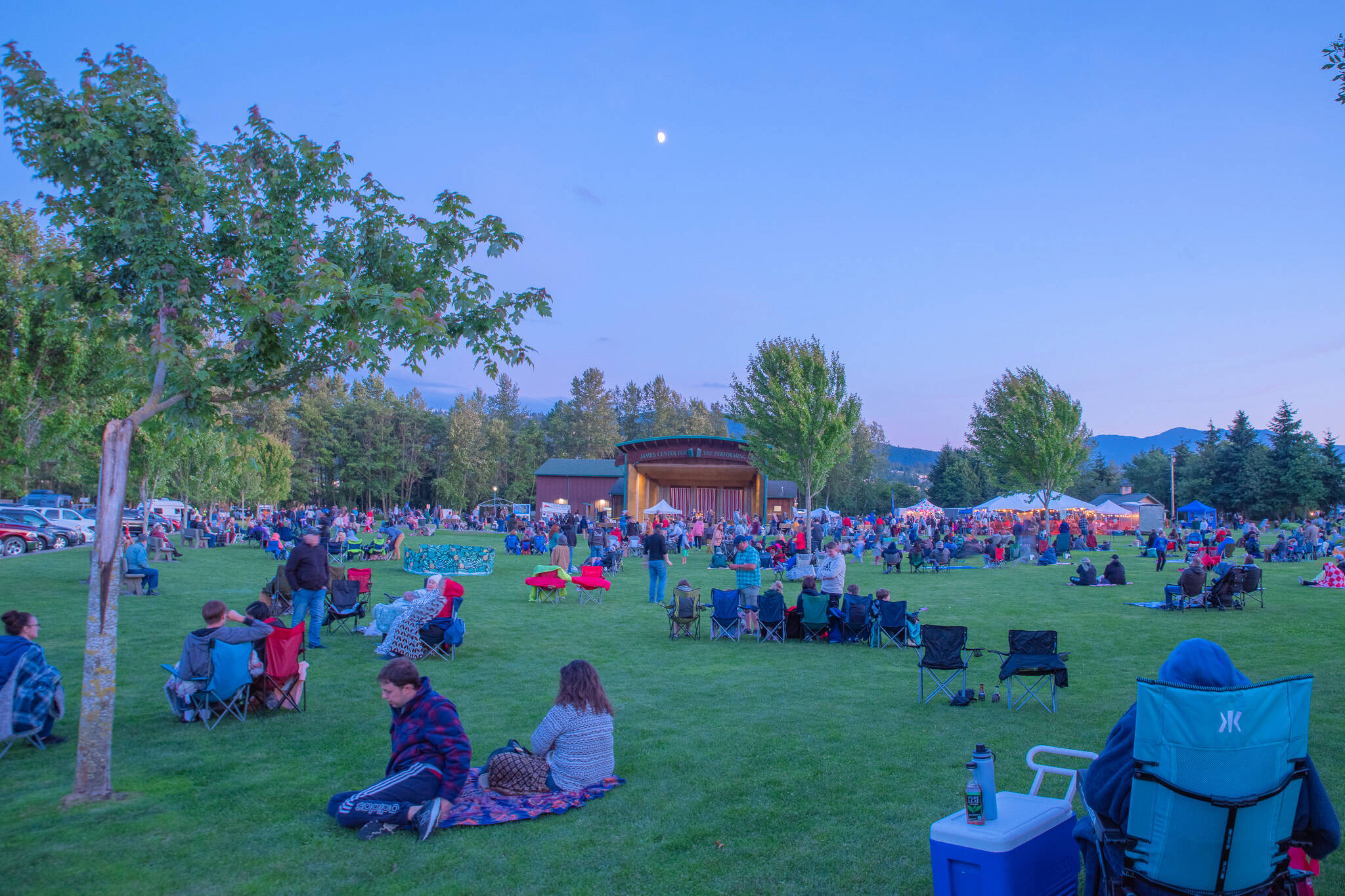 Sequim Gazette photo by Emily Matthiessen/ As Independence Day turns to night at Carrie Blake Community Park, people listen to the music of the band Great American Trainwreck.