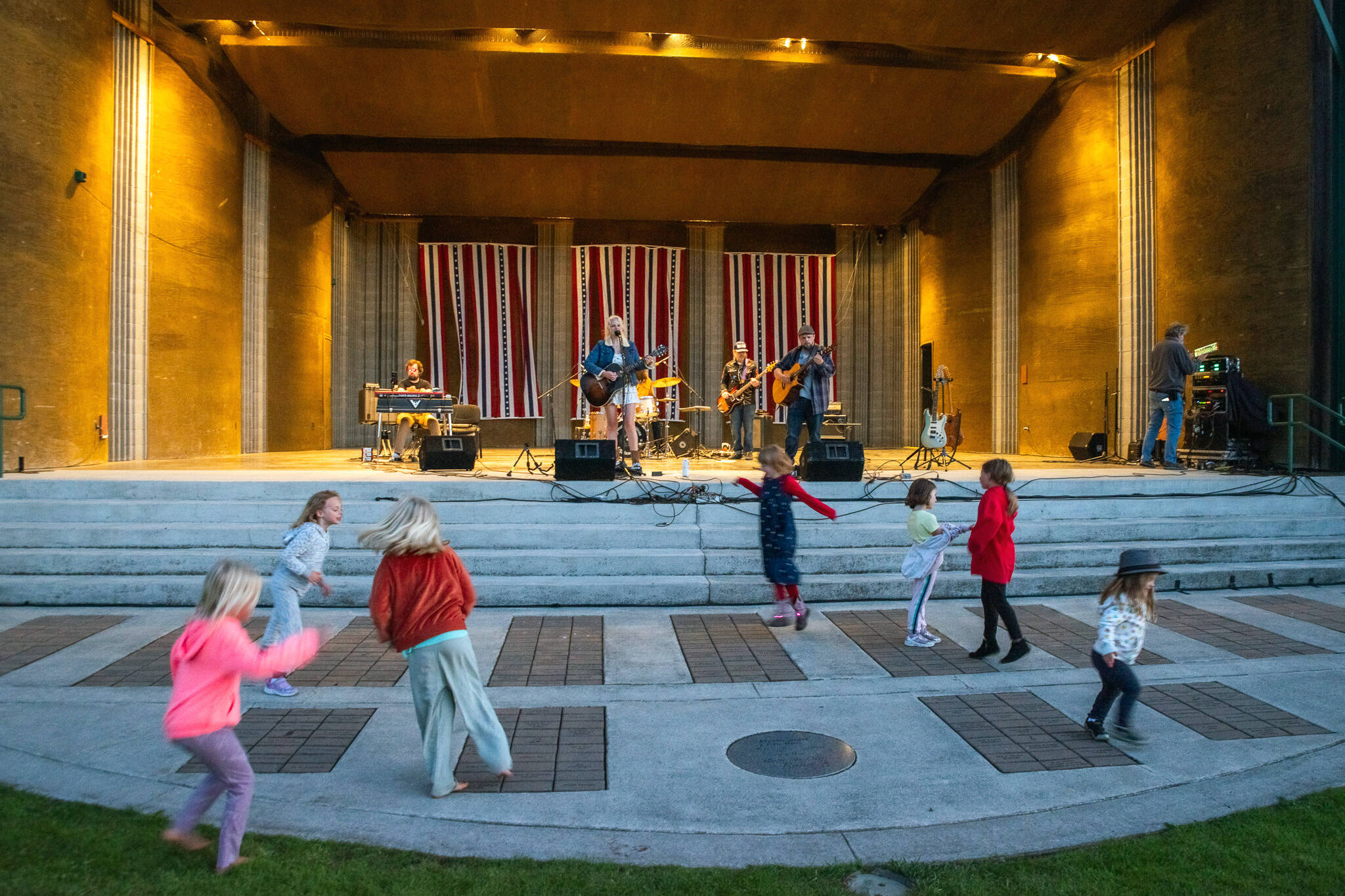 Sequim Gazette photo by Emily Matthiessen/ As Independence Day turns to night at Carrie Blake Community Park, children danced to the music of Great American Trainwreck.