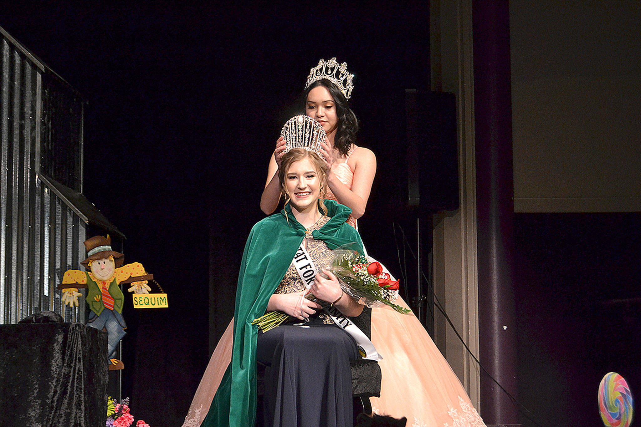 Last year’s Irrigation Festival Queen Erin Gordon crowns Emily Silva as the 2019 Queen for the 124th year of the festival on March 14. Sequim Gazette photo by Matthew Nash