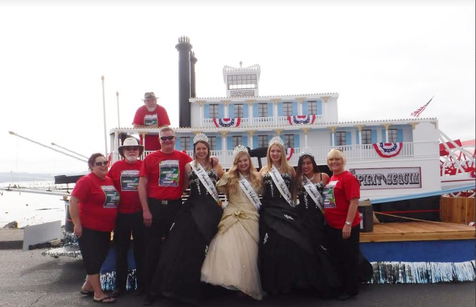 Sequim Irrigation Festival Royalty and float helpers celebrate their three awards at Hoquiam's Loggers Playday on Sept. 10. The float won "Judge's Choice — Best Overall Categories," "Chairman's Choice Award" and "Grand Prize Community Float." Submitted photo