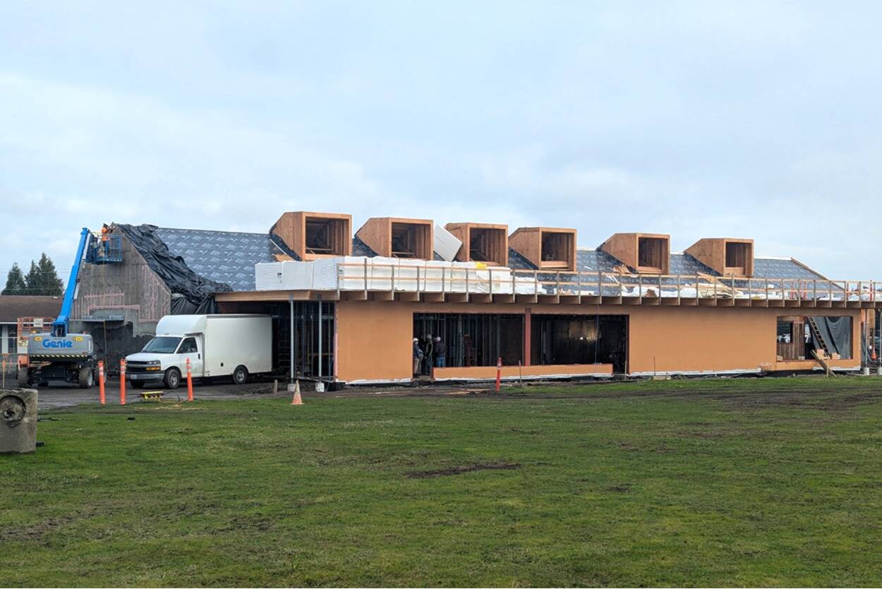The Sequim Library is now covered from the elements and with construction continuing at a strong pace, administrative leaders anticipate the facility being open for the Summer Reading Program.