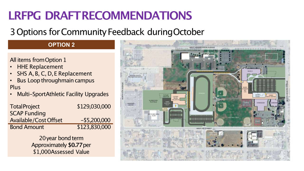 The planning group’s “Option 1” would cost about $114 million. For property owners, that’d cost an estimated $0.71 per $1,000 of assessed value over 20 years.