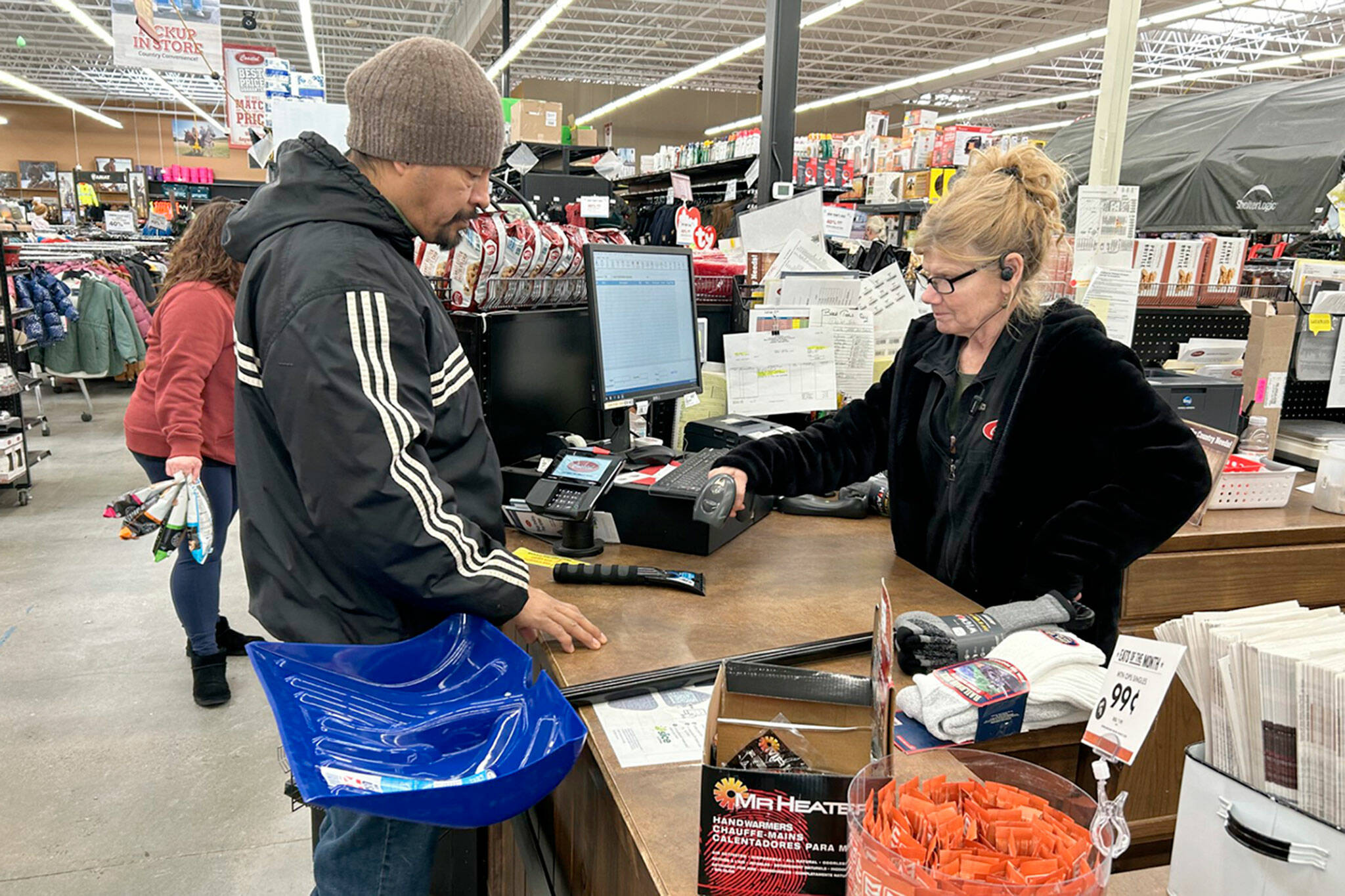 At the Co-Op Farm and Garden on Friday, assistant manager Dave Kunze estimated the store had sold through more than half their supply of de-icer and snow shovels just two days after receiving their shipment, but staff anticipated a full restock the following day.