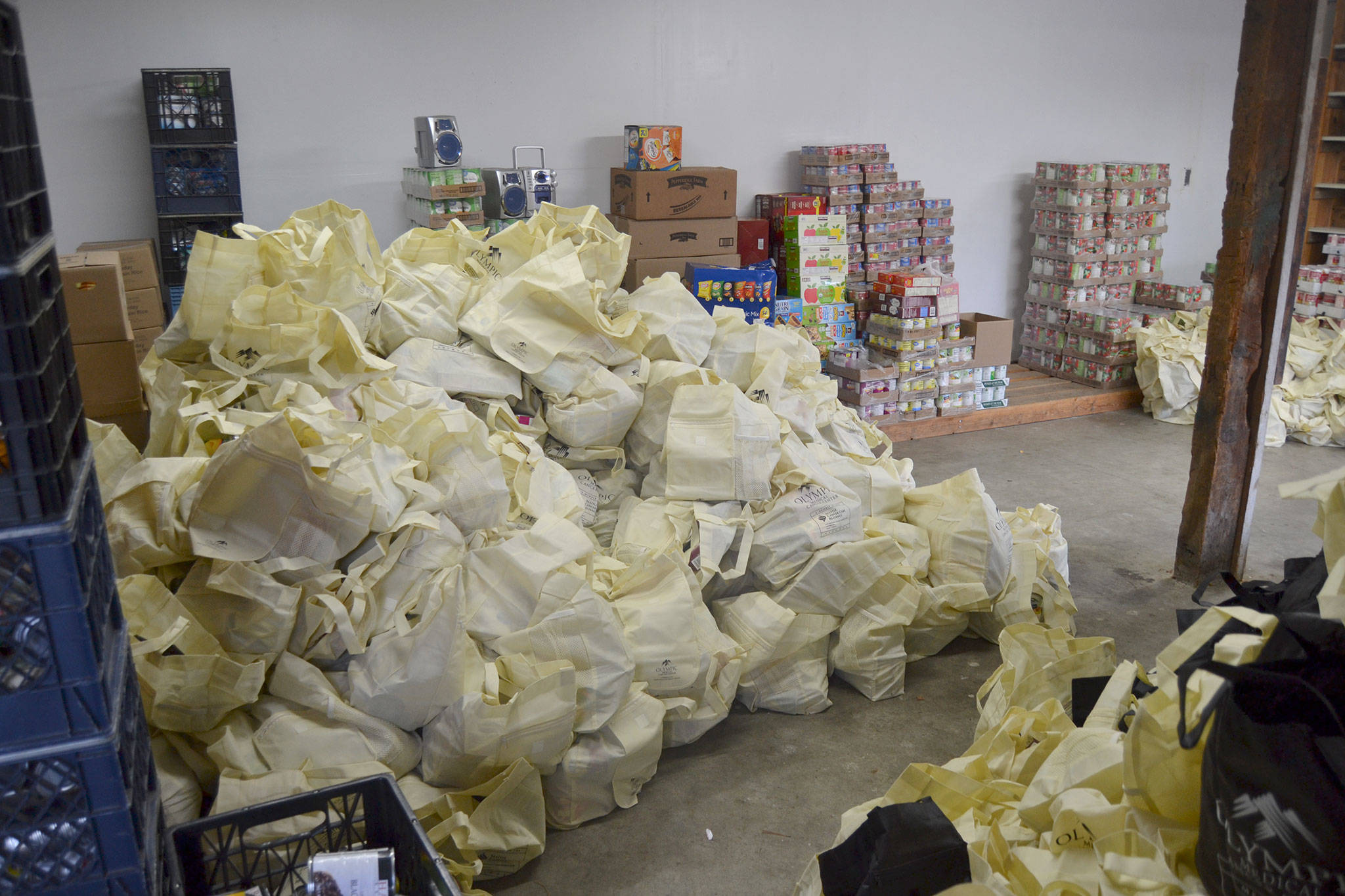 Food bank board president Stephen Rosales said volunteers and staff handed out 900 turkeys, pies and more on Nov. 16-17 and 19 for this year’s Holiday Meal Bags program. In preparation, about 50 volunteers from Dungeness Valley Lutheran Church, Sequim Seventh-day Adventist Church and Trinity United Methodist Church prepped 900 bags with stuffing and other food in just 30 minutes on Nov. 13.
