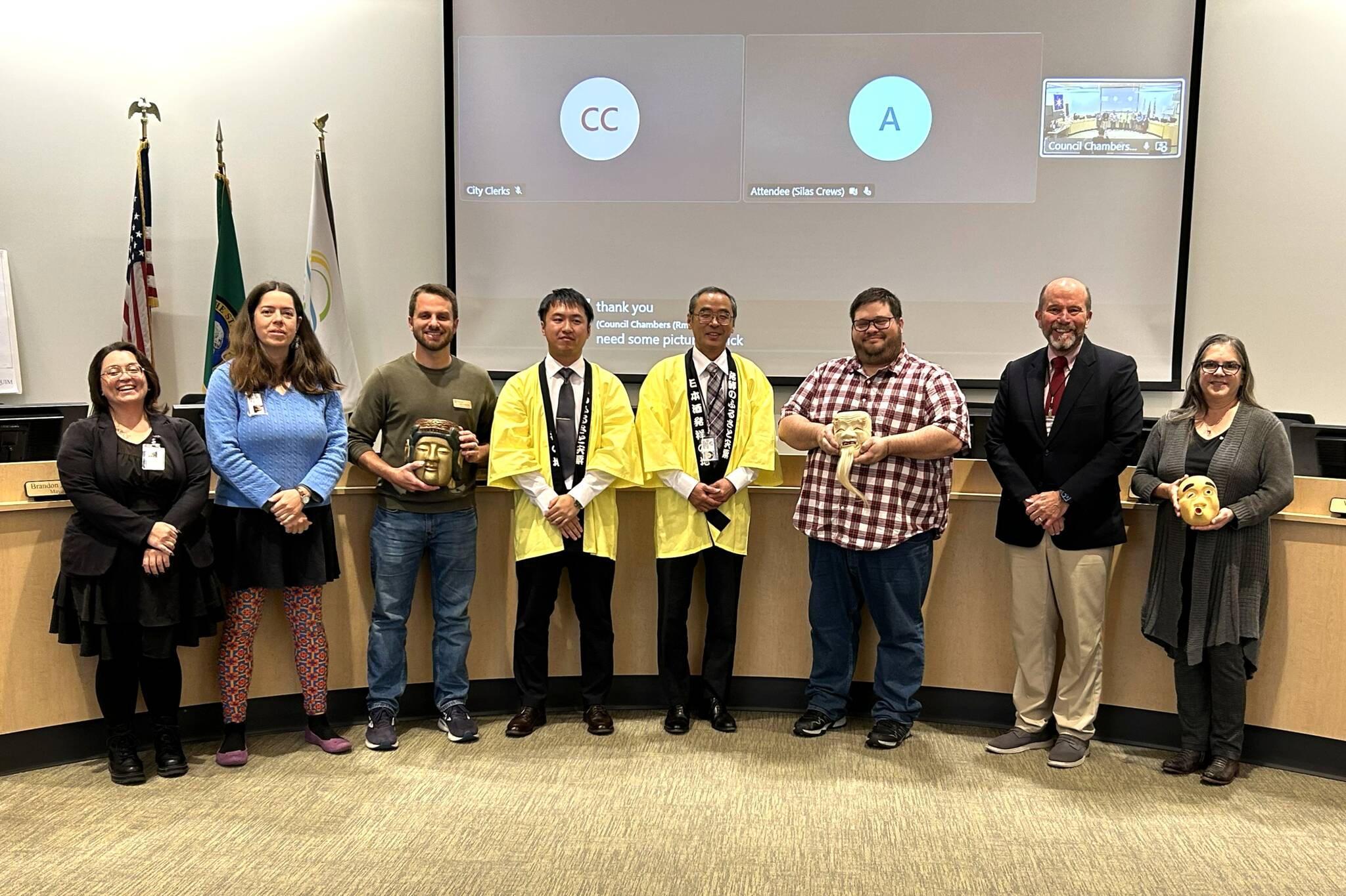 After Janisse read the proclamation, Tomita presented traditional Japanese performing arts masks from Shiso City that represent friendship, connection and happiness. They’ll be on display inside the Sequim Civic Center’s Sister City display case in the near future, staff said.