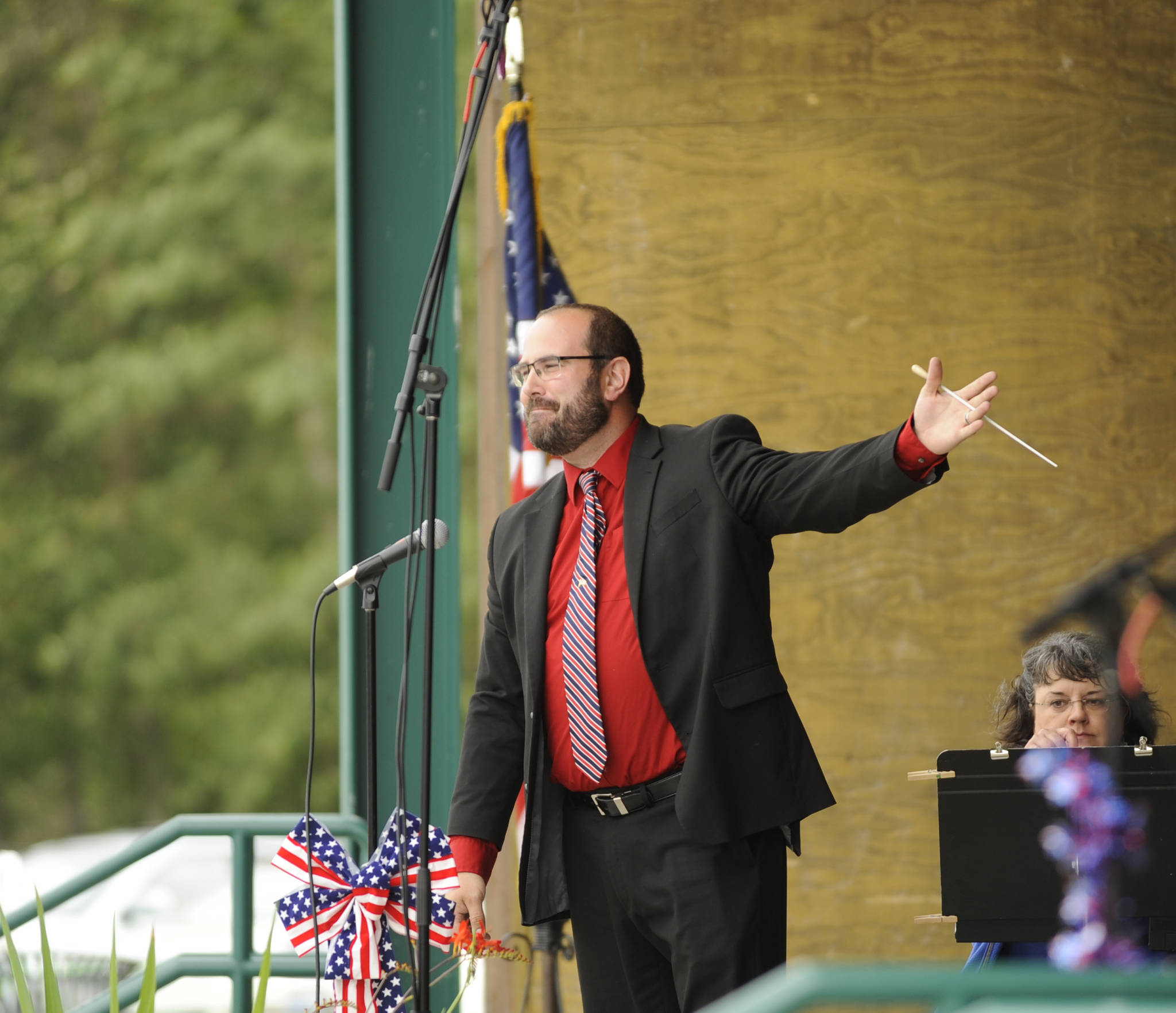 Sequim City Band director Tyler Benedict leads the band at Thursdays “A Patriotic Fourth” concert. Sequim Gazette photo by Michael Dashiell