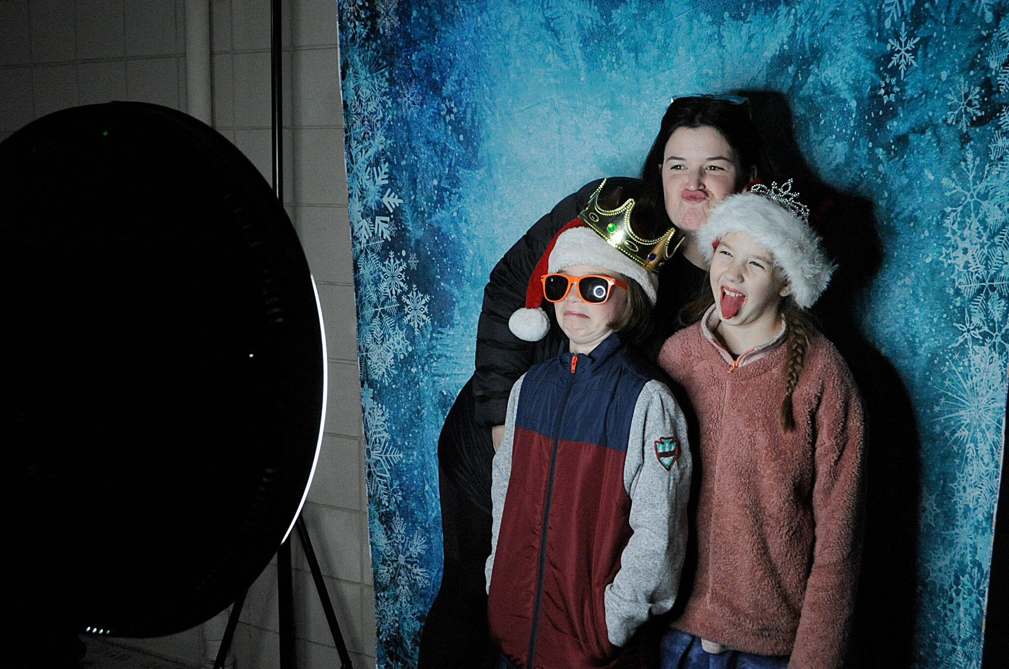 With lights and music throughout the courtyard, Helen Haller Elementary’s Parent Teacher Organization hosted a Winter Wonderland on Dec. 16 with lights, popcorn, music, hot cocoa, a photo booth and an appearance by Santa Claus. Here, Samantha Rossi takes a selfie with her daughters Olive and Elliana. Sequim Gazette photo by Matthew Nash