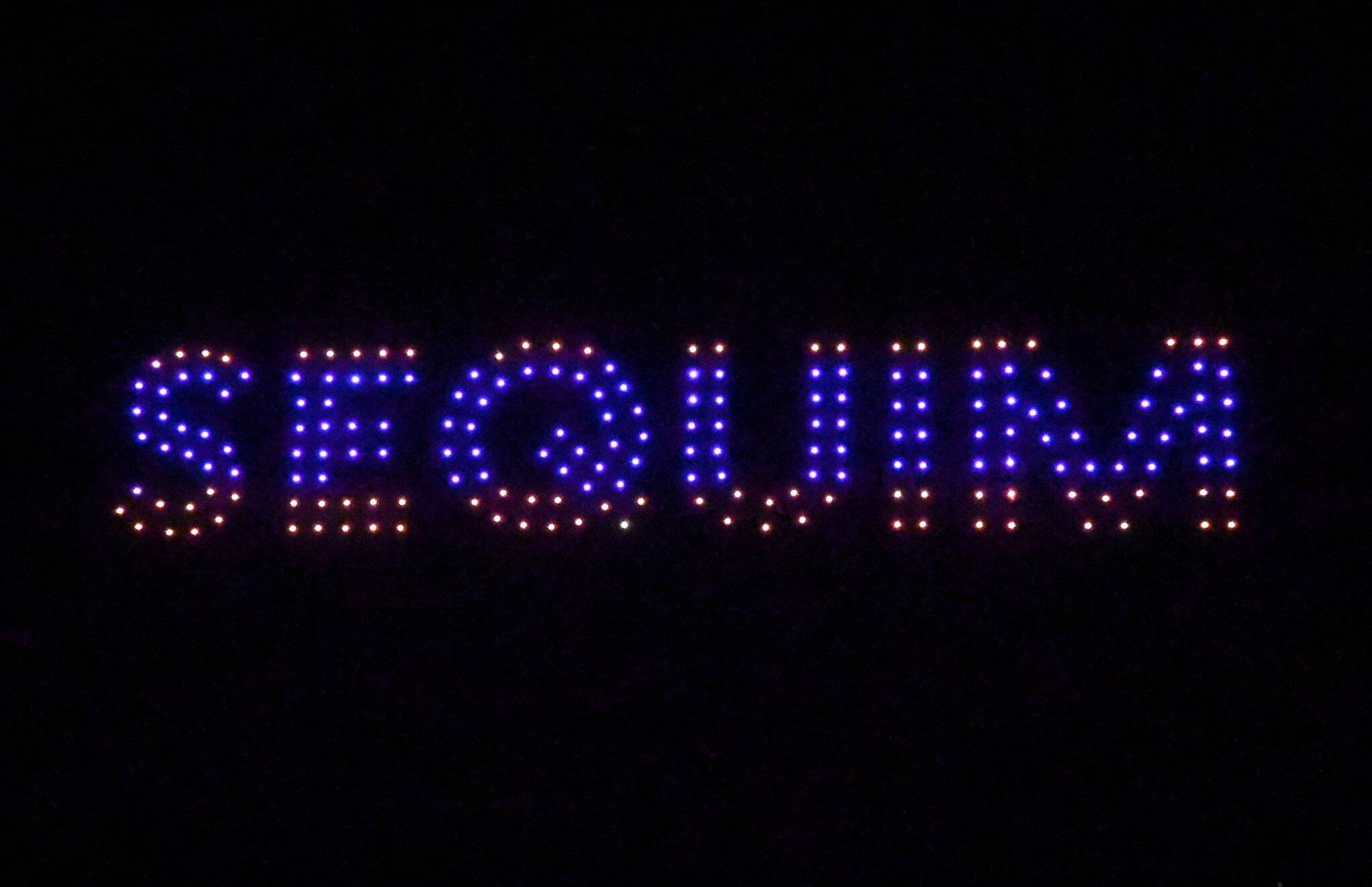Sequim Gazette file photo by Michael Dashiell / Sequim Sunshine Festival’s Illuminated Drone Show, seen here in 2024 spelling out “Sequim” with 300 drones, returns this weekend at 7 p.m. Saturday, March 8 in Carrie Blake Community Park.