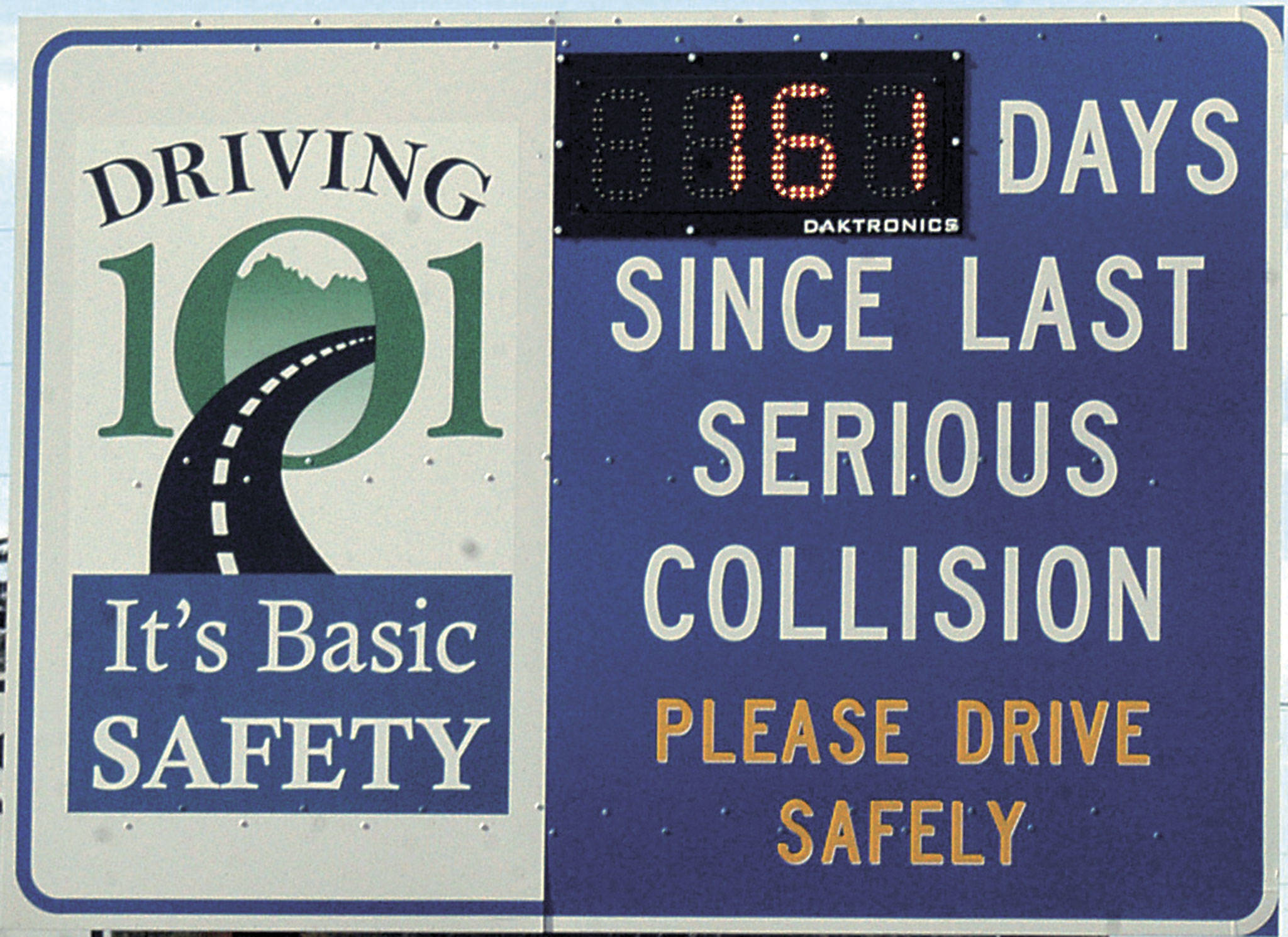 Washington State Patrol Trooper Chelsea Hodgson reported on Feb. 6 that the “Driving 101: It’s Basic Safety” digital collision sign came down sometime between Feb. 5-6 after breaking outside the State Patrol’s office off U.S. Highway 101.