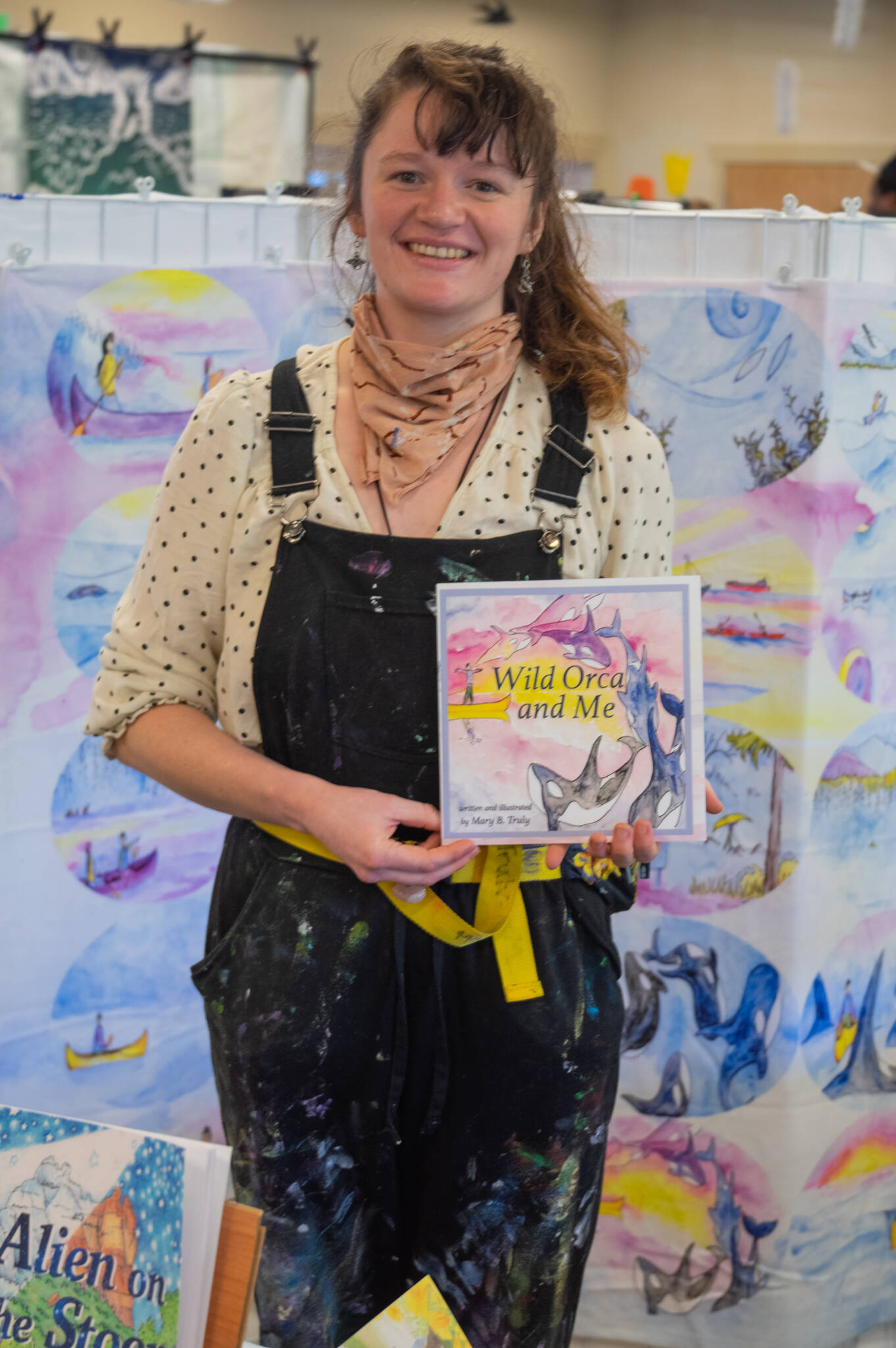Artist and author Mary B. Truly displays one of her publications at the Sunshine Market on Saturday. (For more about the artist/author, see marybtruly.com). Sequim Gazette photo by Emily Matthiessen