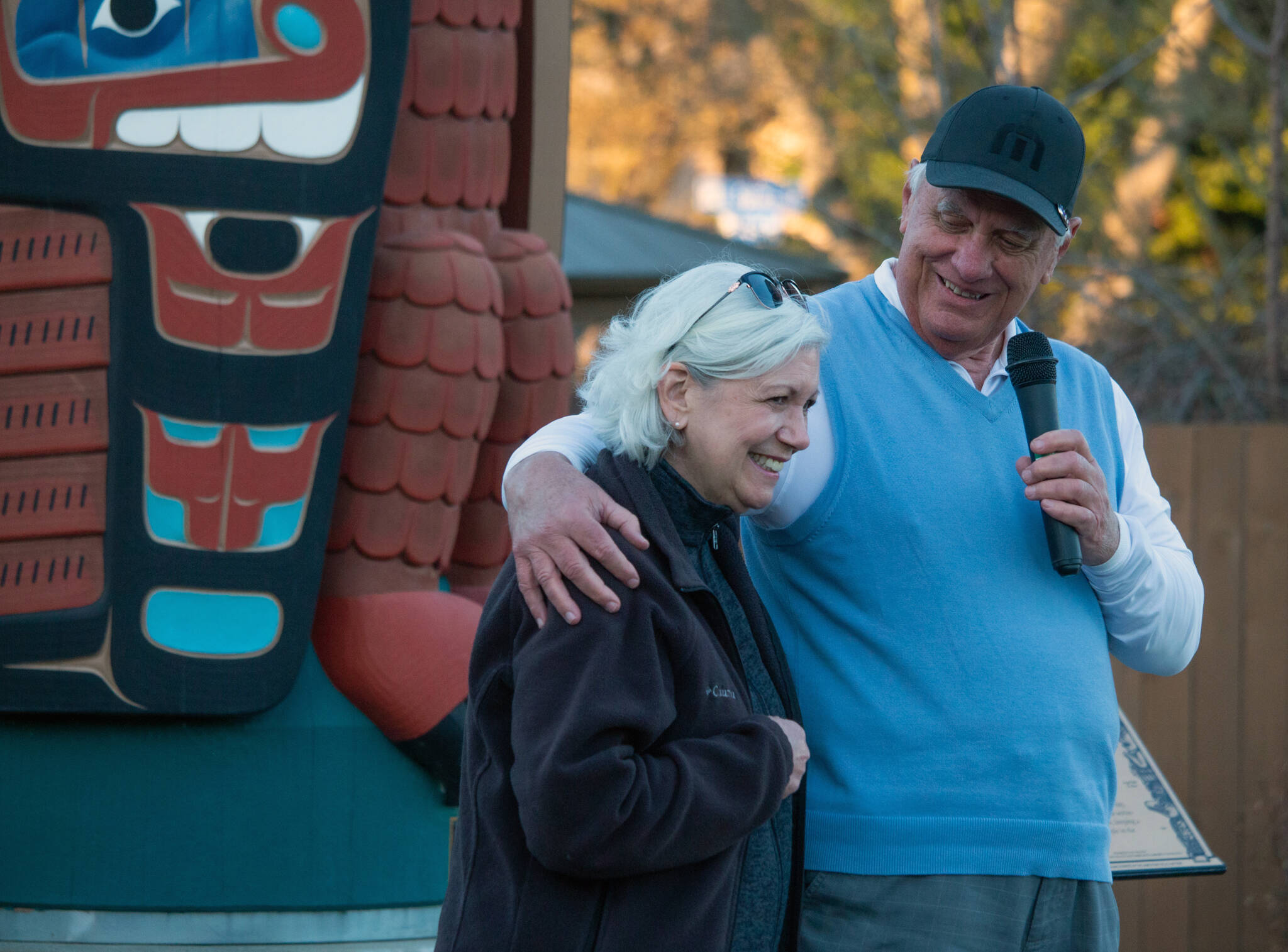 Sequim mayor Tom Farrell praises Barb Hanna, City of Sequim’s Communications and Marketing Director, for her work starting the Sunshine Festival three years ago. Sequim Gazette photo by Emily Matthiessen