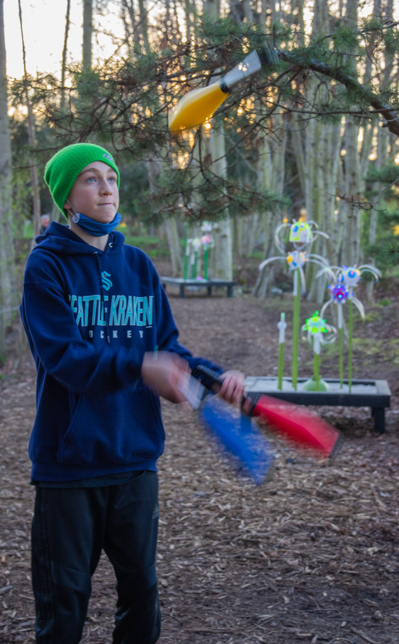 Charles Thompson, a 13-year-old from Port Angeles, shares his juggling skills with people using the bridge between the two sides of Carrie Blake Community Park during the 2022 Sunshine Festival on Saturday. Thompson says he has been practicing juggling for about 4 years. Sequim Gazette photo by Emily Matthiessen