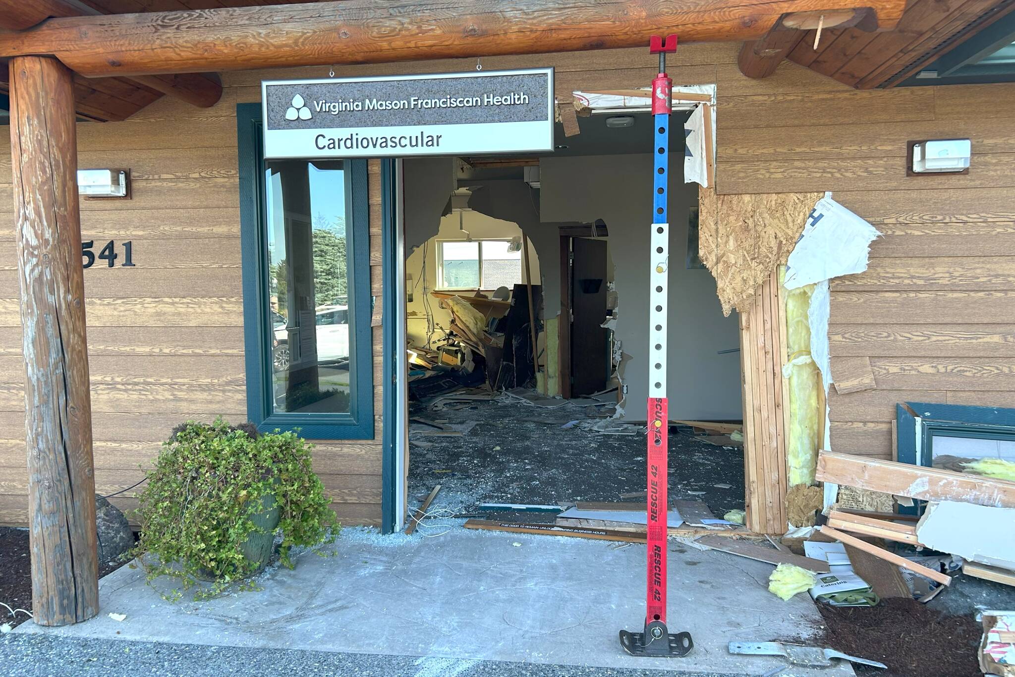 Battalion Chief Chris Turner with Clallam County Fire District 3 reports that just before 9:30 a.m. Sept. 22, the SUV’s driver with a passenger drove into the front of Virginia Mason Franciscan Health – Cardiovascular at 541 Eureka Way in Sequim.