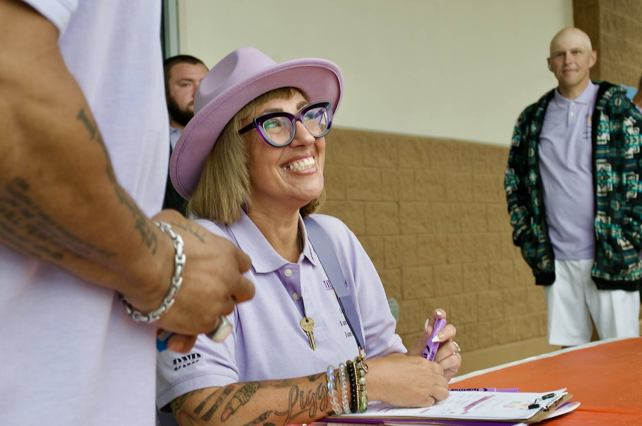 An artist, Alicia was excited to help design the booth that H.U.M.A.N. will have at the Sequim Back to School Fair at the Boys and Girls Club on Saturday, Aug. 23, where there will be games and information about the organization. The booth will have a purple awning and oversized name-brand shoe boxes created from large cardboard boxes.