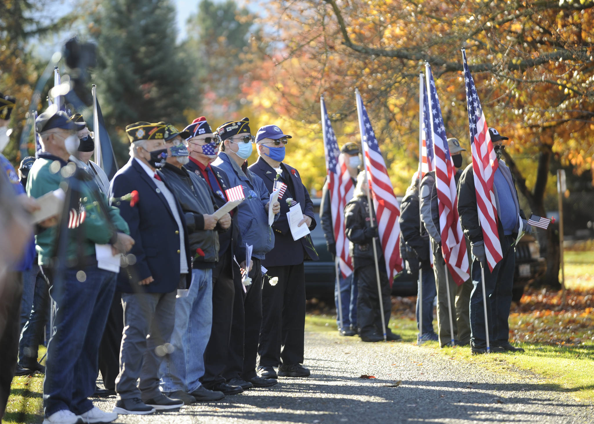 The words from Paul Renick, Commander of the American Legion Post 62, highlighted a unique Veterans Day ceremony held at the historic park near downtown Sequim. With many community celebrations canceled or moved online because of statewide COVID-19 health restrictions, the event drew veterans and non-veterans alike as local advocates lauded veterans’ efforts.