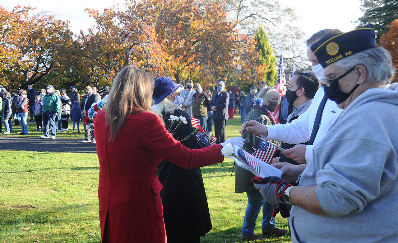 He read a message from U.S. Sen. Maria Cantwell to veterans that read, in part, “We owe our freedom to (veterans’) sacrifice and those of their families.”