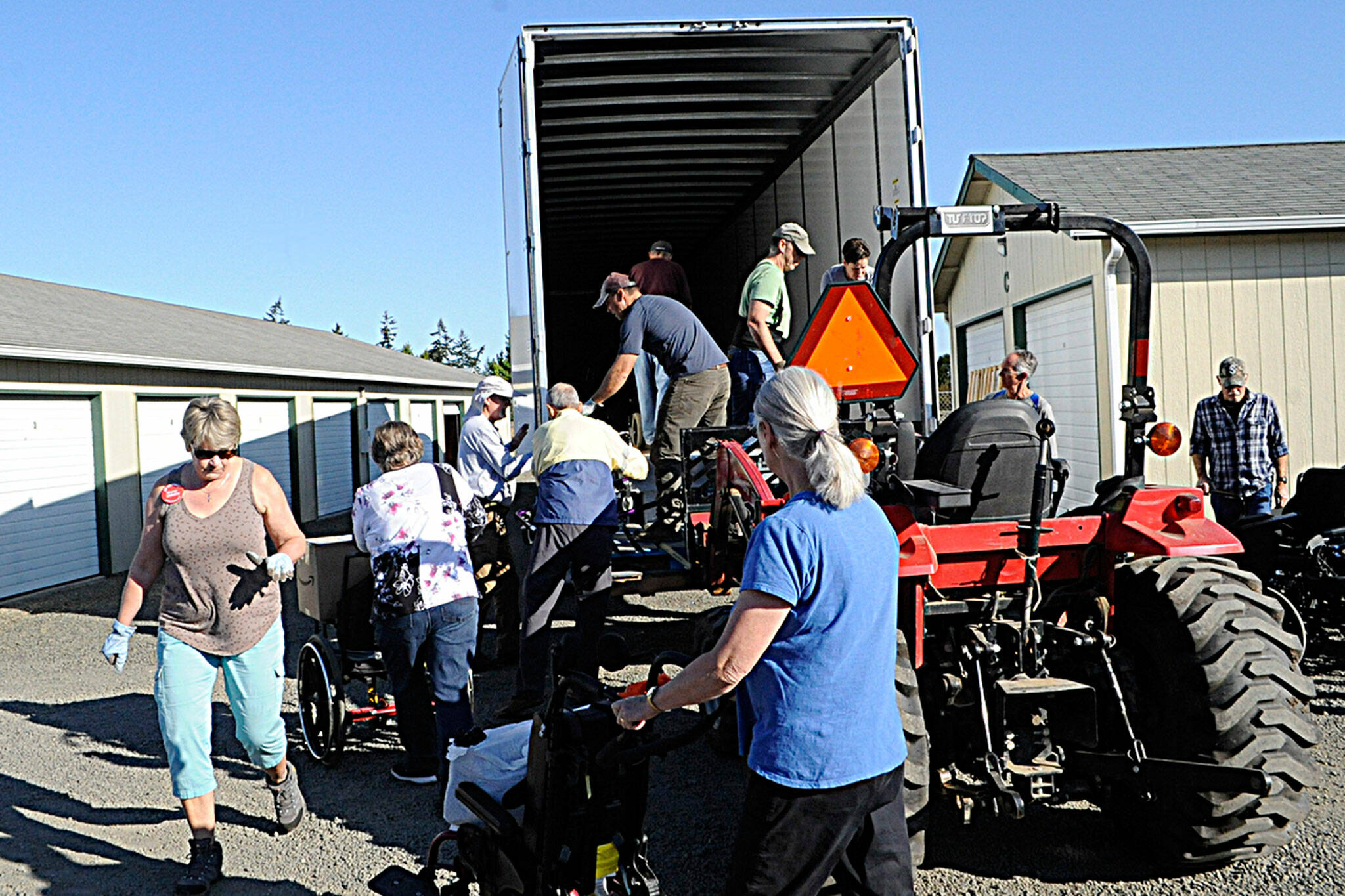 She and about 24 fellow volunteers with Dungeness Community Church loaded wheelchairs, walkers and more into a tractor-trailer at All-Safe Mini Storage.