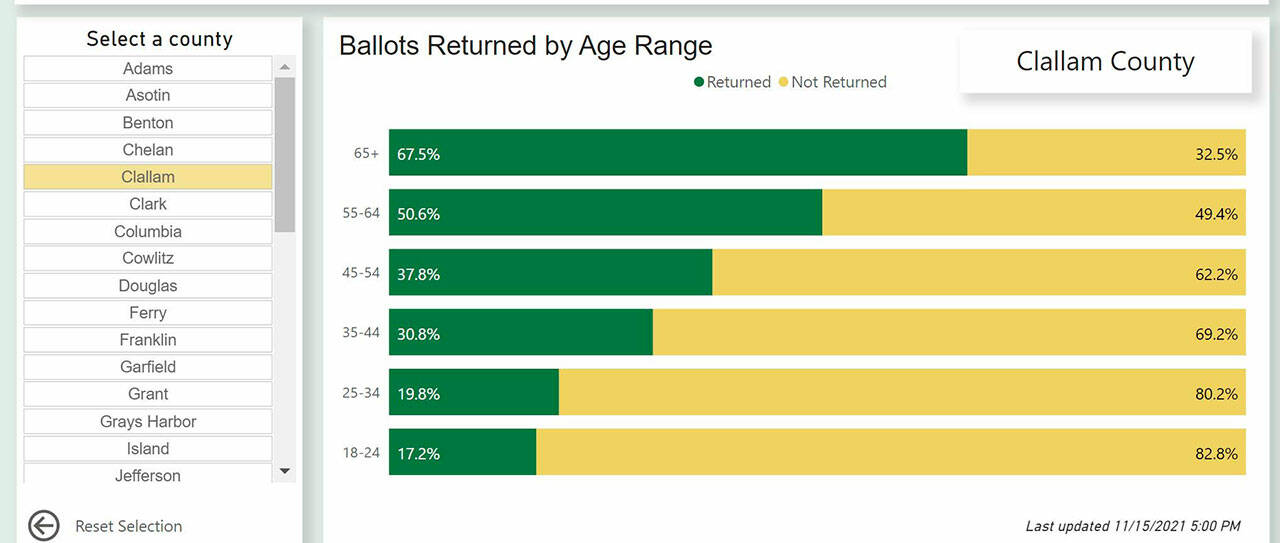 Minutes of the most recent meeting of the committee were attached. Embedded in those minutes was a chart of Clallam County voter participation by age in the last election (see chart below).