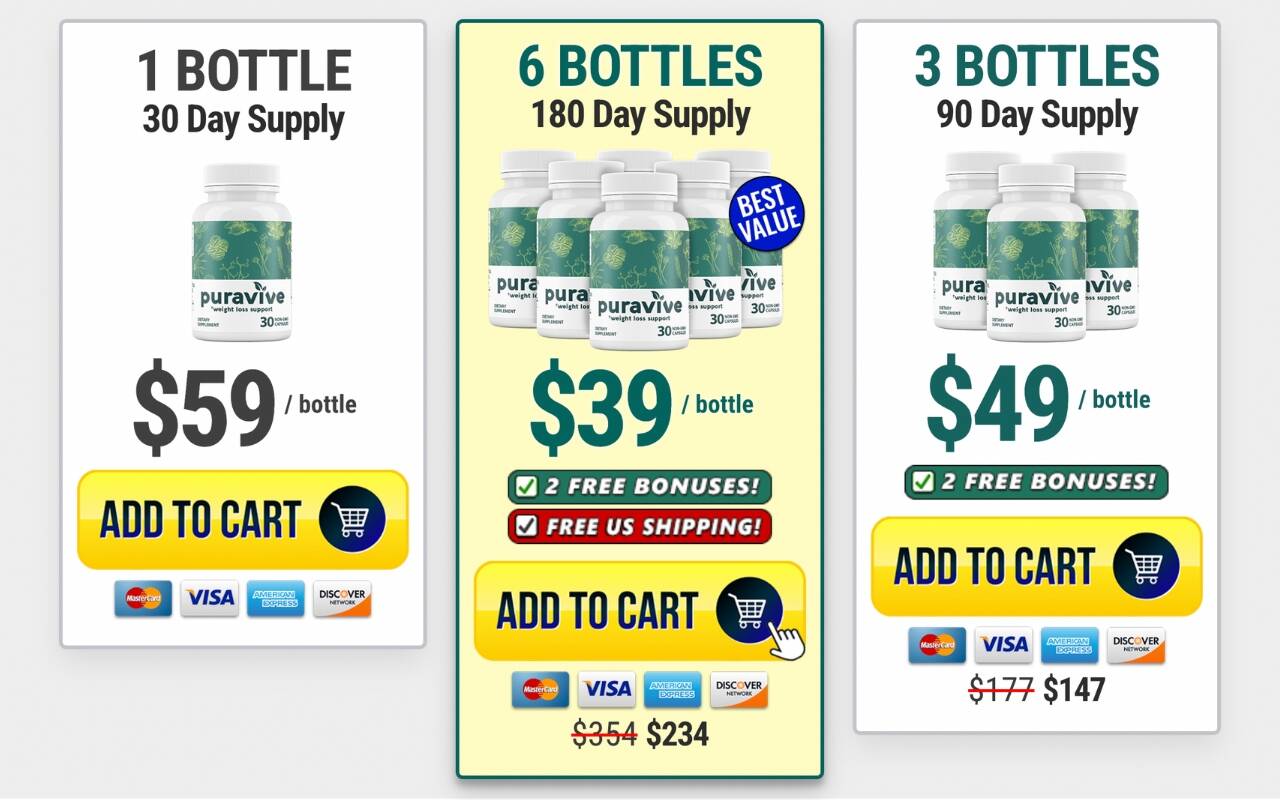 Choose the option that best matches your requirements and take advantage of the convenient pricing and bonus offers from Puravive.