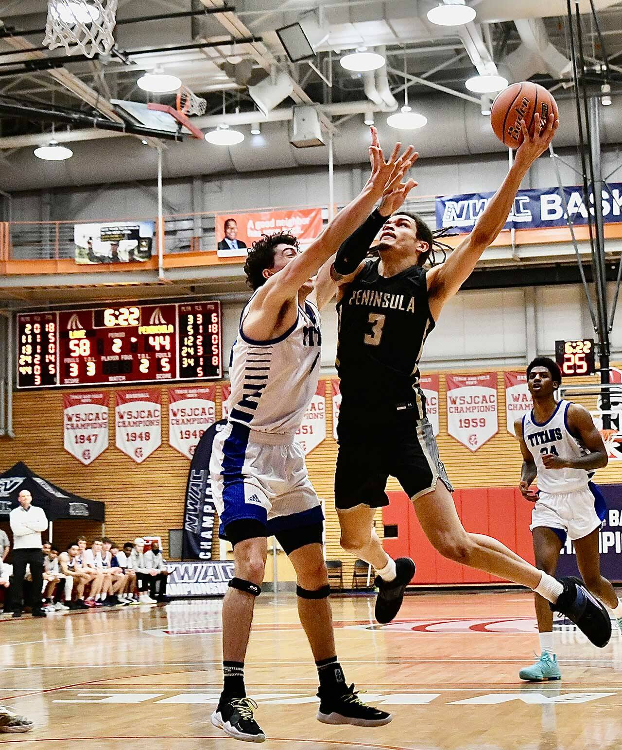 Peninsula’s men rebounded from a tough first half to out-score Lane in the second, but the No. 1-seeded Titans (24-3) were too much for fourth-seeded PC (16-11) in an 82-68 decision March 17 in Everett.