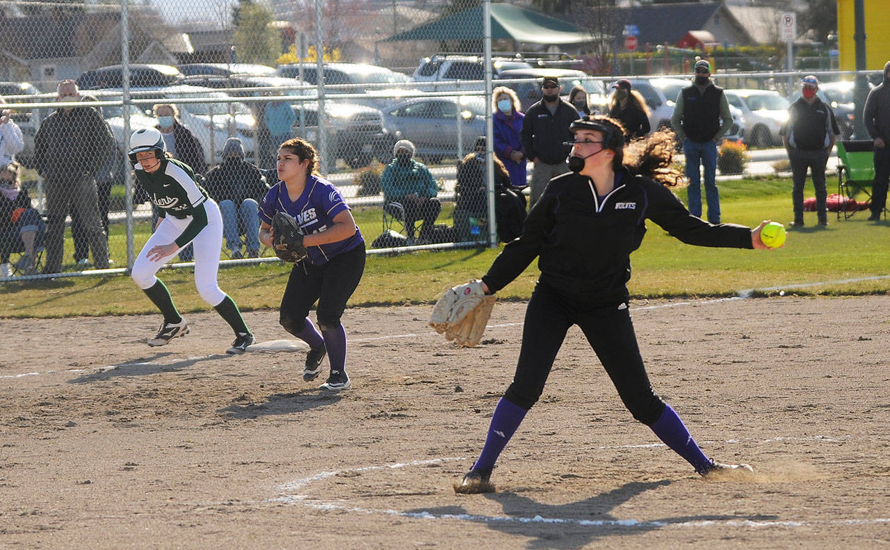 Beside allowing a solo home run to Vig in the Wolves’ last turn at the plate, Port Angeles reliever Cheyenne Zimmer, with help from shortstop Jada Cargo-Acosta, shut Sequim down.
