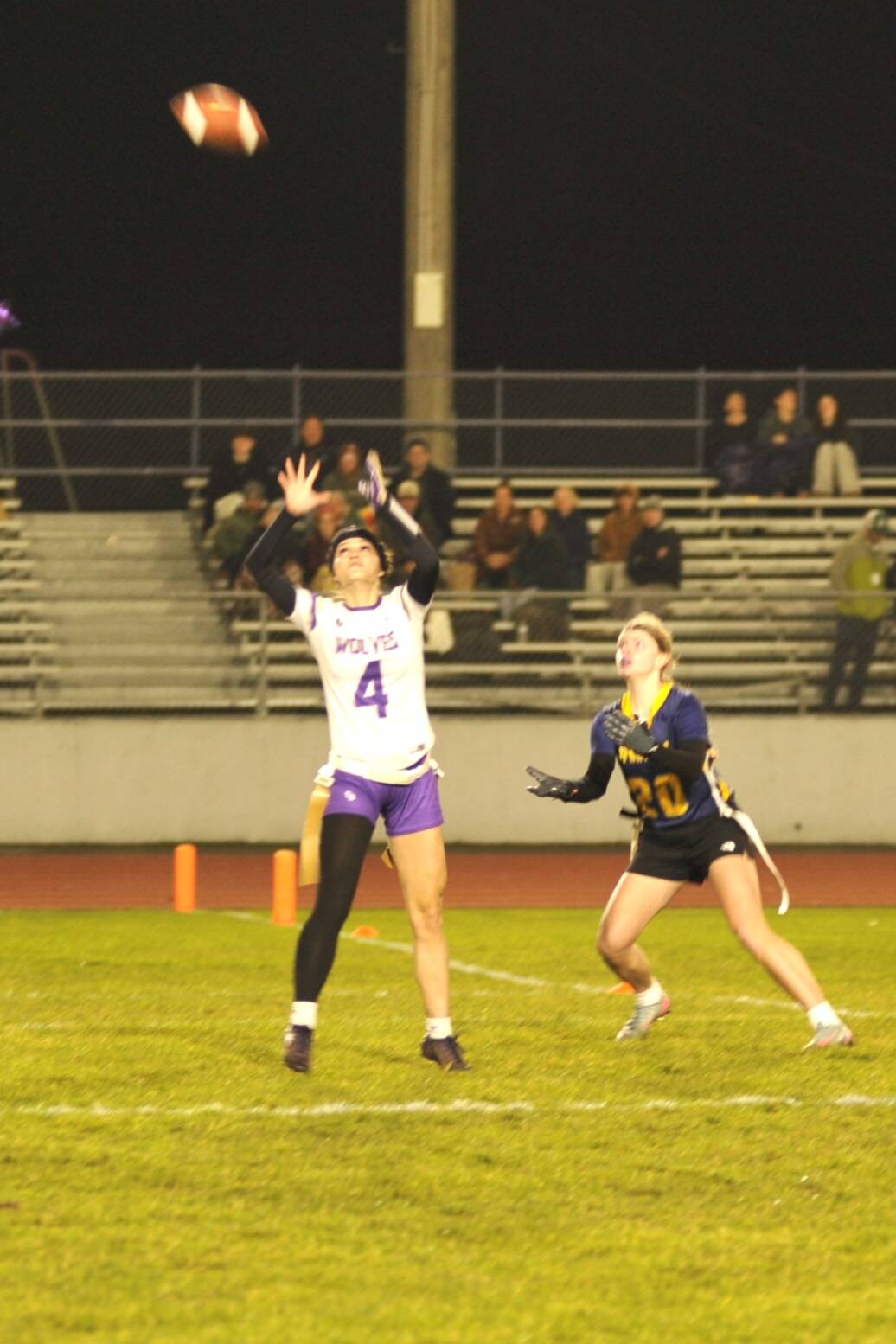 The Wolves tied it again with a passing touchdown from Sparks to Winter. Moxley-Horgan made an interception but Sequim couldn’t capitalize, leading to another Spartans touchdown.