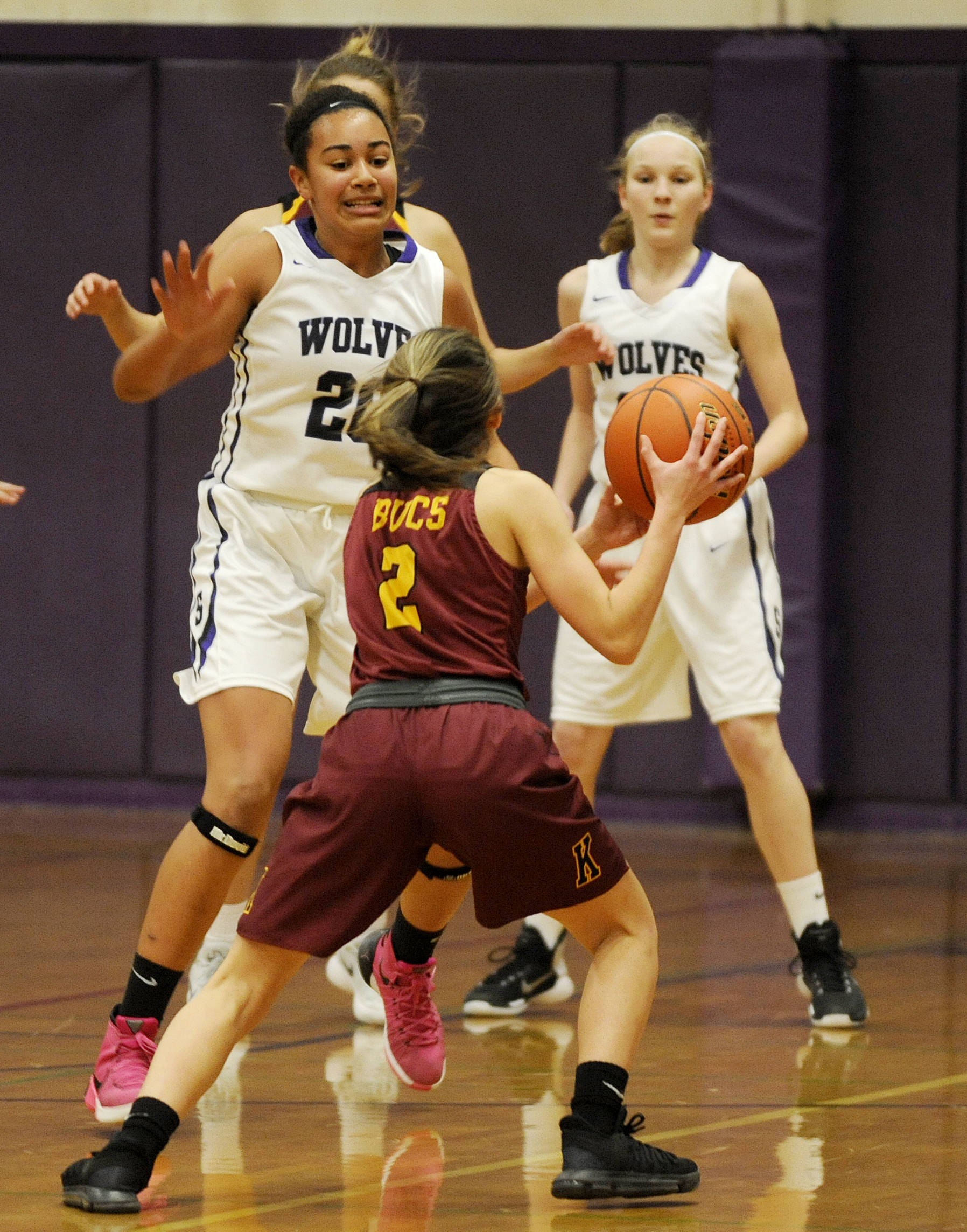 In their first game back from winter break, the Wolves held a 21-14 lead with a minute left in the first half after forcing 16 Kingston turnovers and holding the Bucs to 9-of-28 (32 percent) shooting.