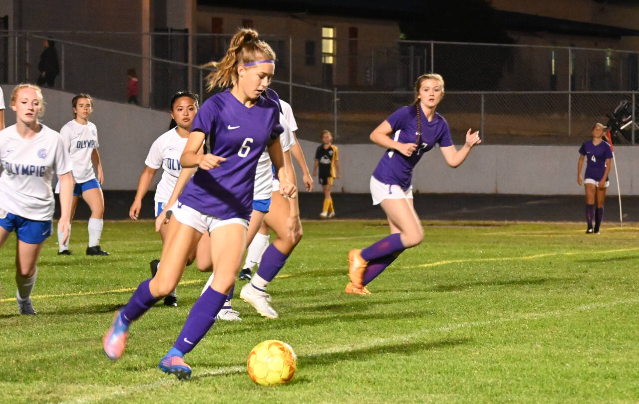 Sequim striker Taryn Johnson found the back of the net five times as the Wolves overpowered Olympic 6-1 at home in a girls soccer match at Myron Teterud Field on Sept. 20.