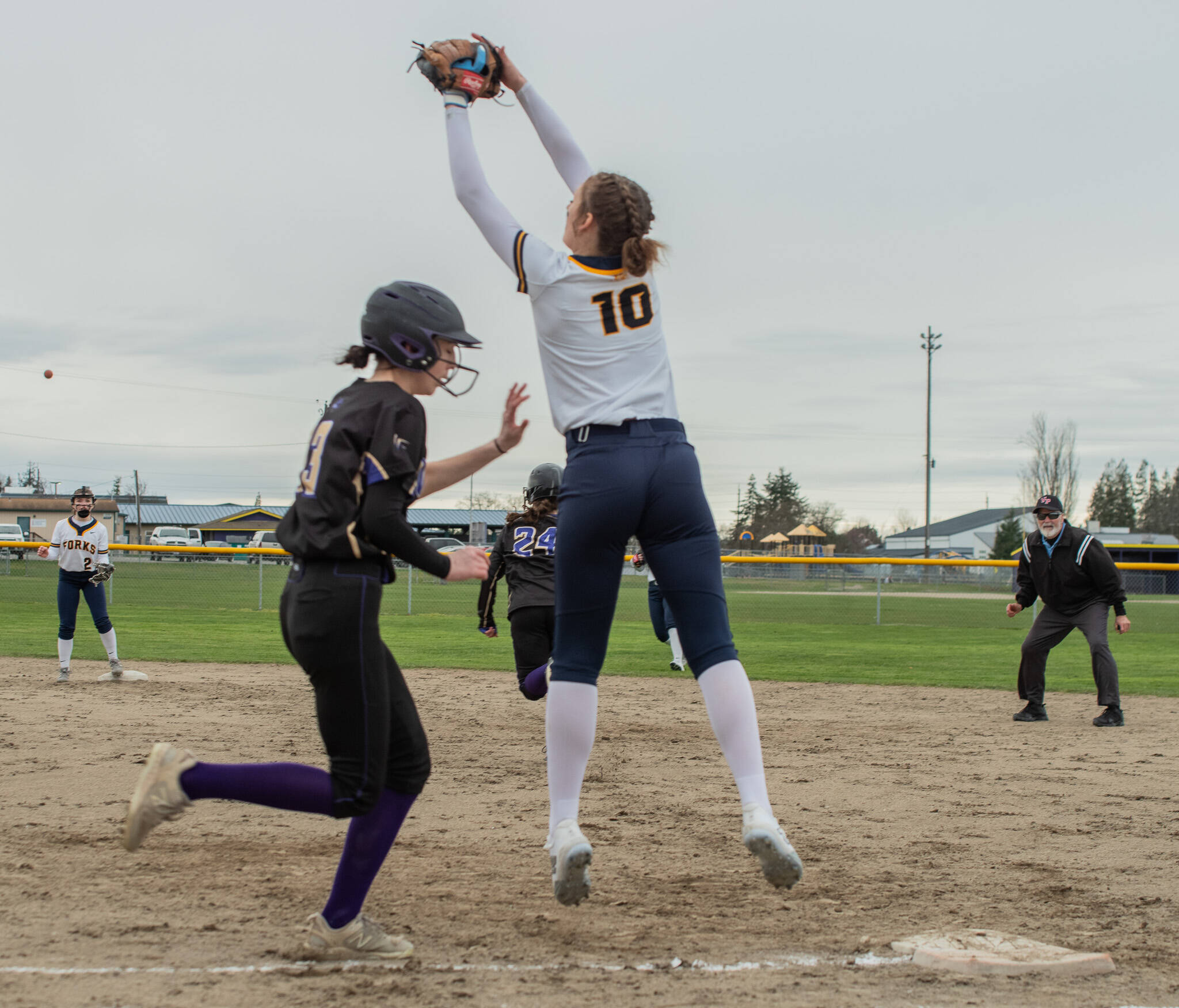 The Forks girls softball team scored a total of 37 runs in a doubleheader sweep of the Wolves in Sequim. Forks won the first game 19-1 and the second 18-9.