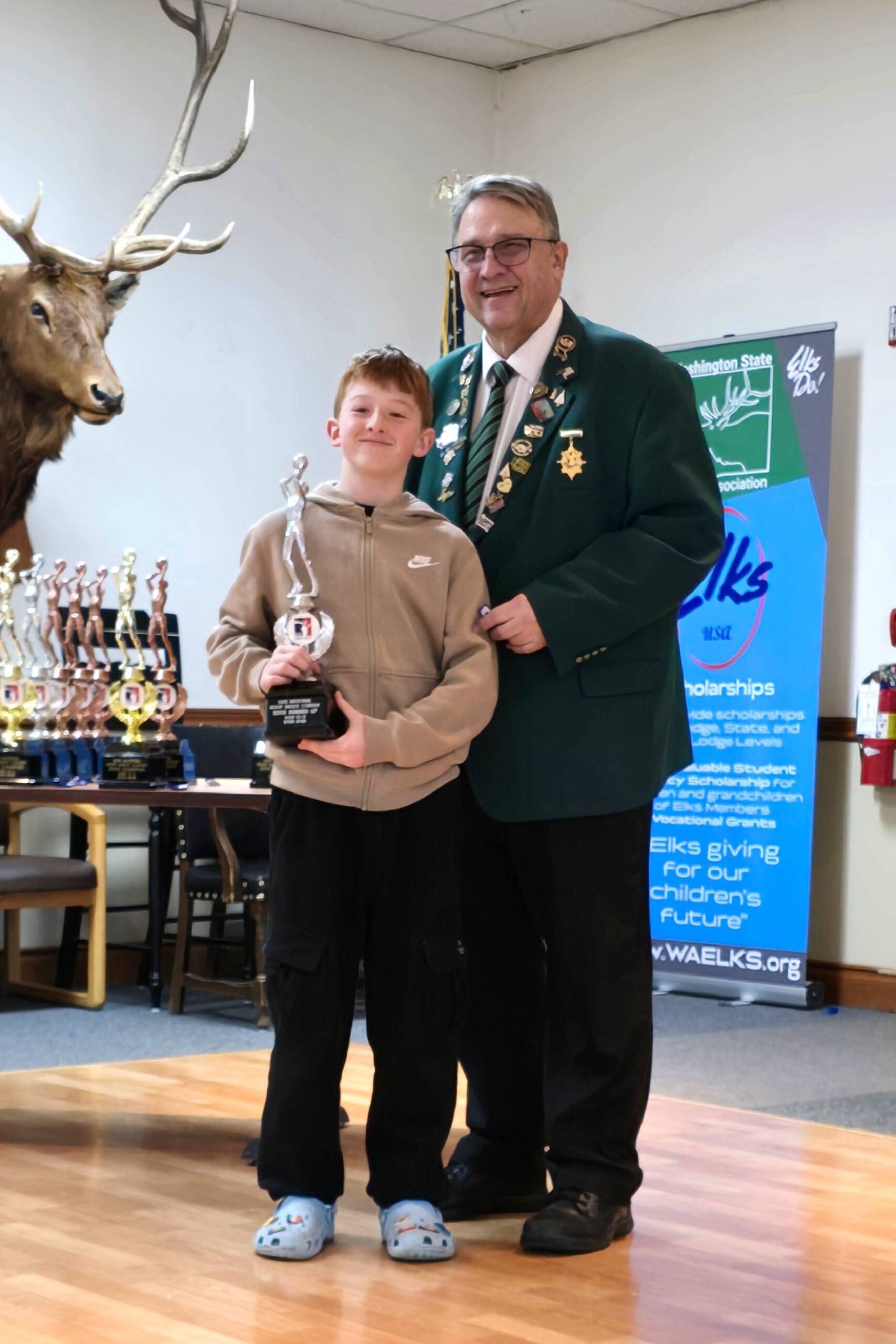 The 11-year-old Helen Haller Elementary student was runner-up in the Elks Hoop Shoot ages 10-11 boys contest on Feb. 15 at Saint Martin’s University in Lacey.