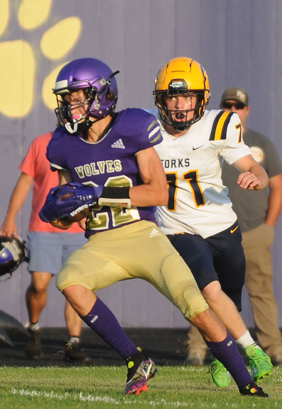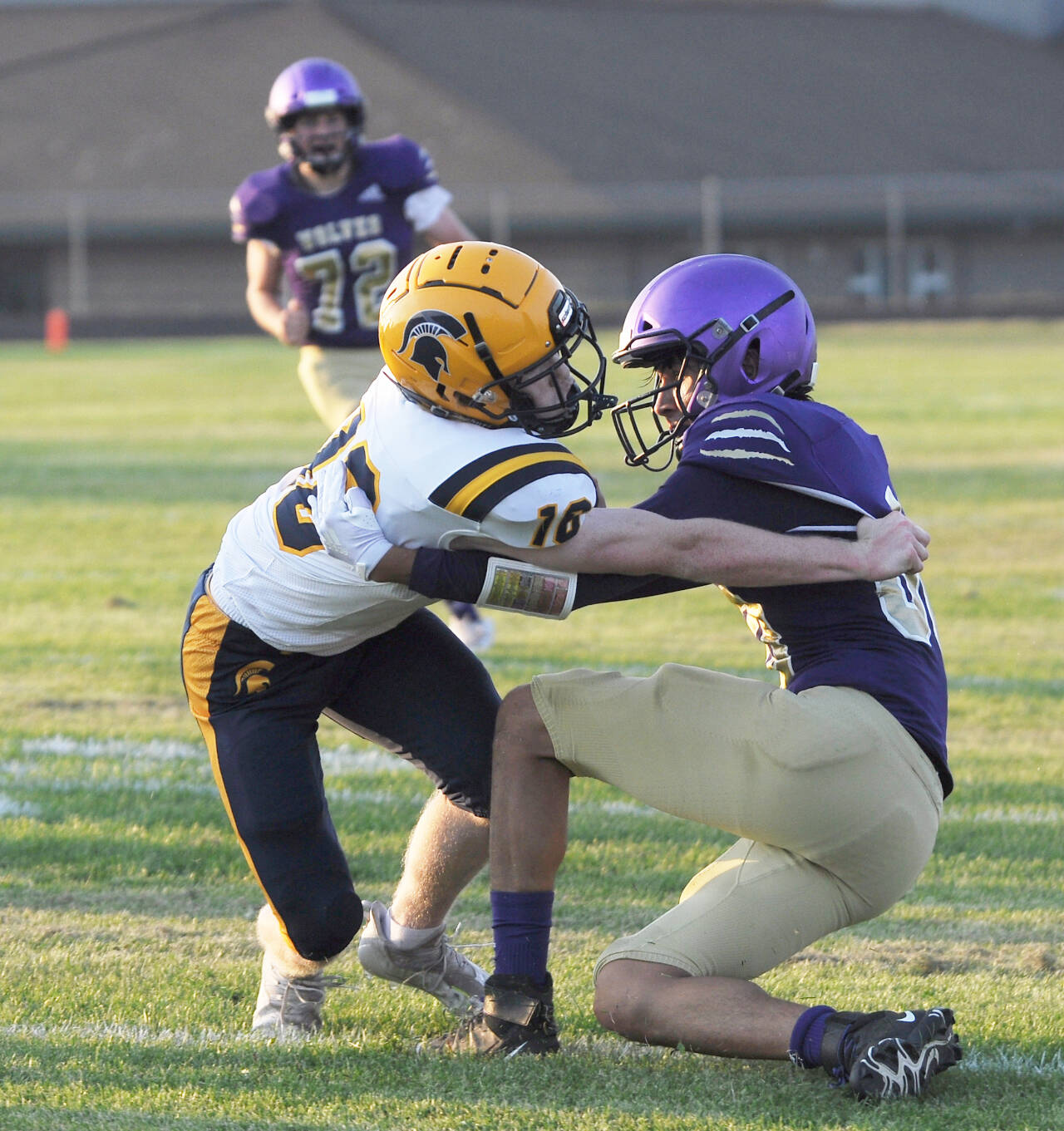 Forks’ power rushing scheme gobbled up yardage inside and out offensively. Its defense produced four Sequim turnovers, including an interception return for touchdown and the Spartans battered the Wolves 32-14 on Friday night.