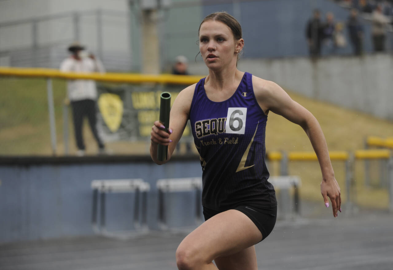 By the time officials were wrapping up the West Central bi-district 2A meet punctuated by jersey-soaking downpours at the boys’ pole vault pit, Sequim had already cleared a number of milestones.