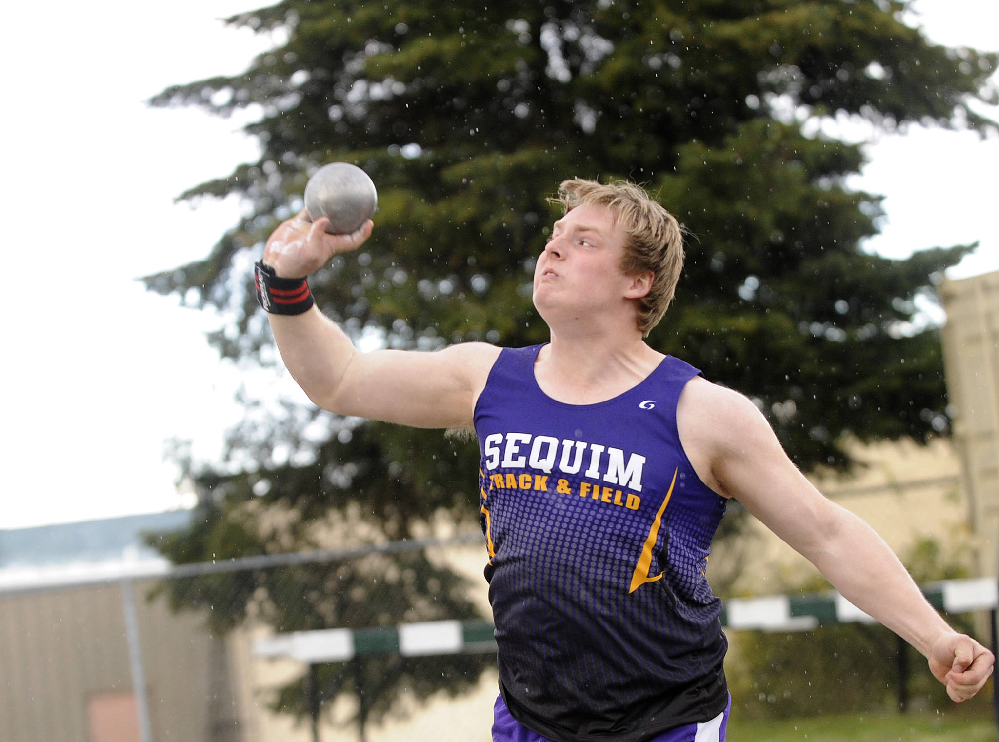 Sequim’s boys dominated a rain-drenched, four-team Olympic League meet in Port Angeles on April 20 with 100 team points, easily getting past Coupeville (67), Port Townsend (45) and the host Roughriders (40).