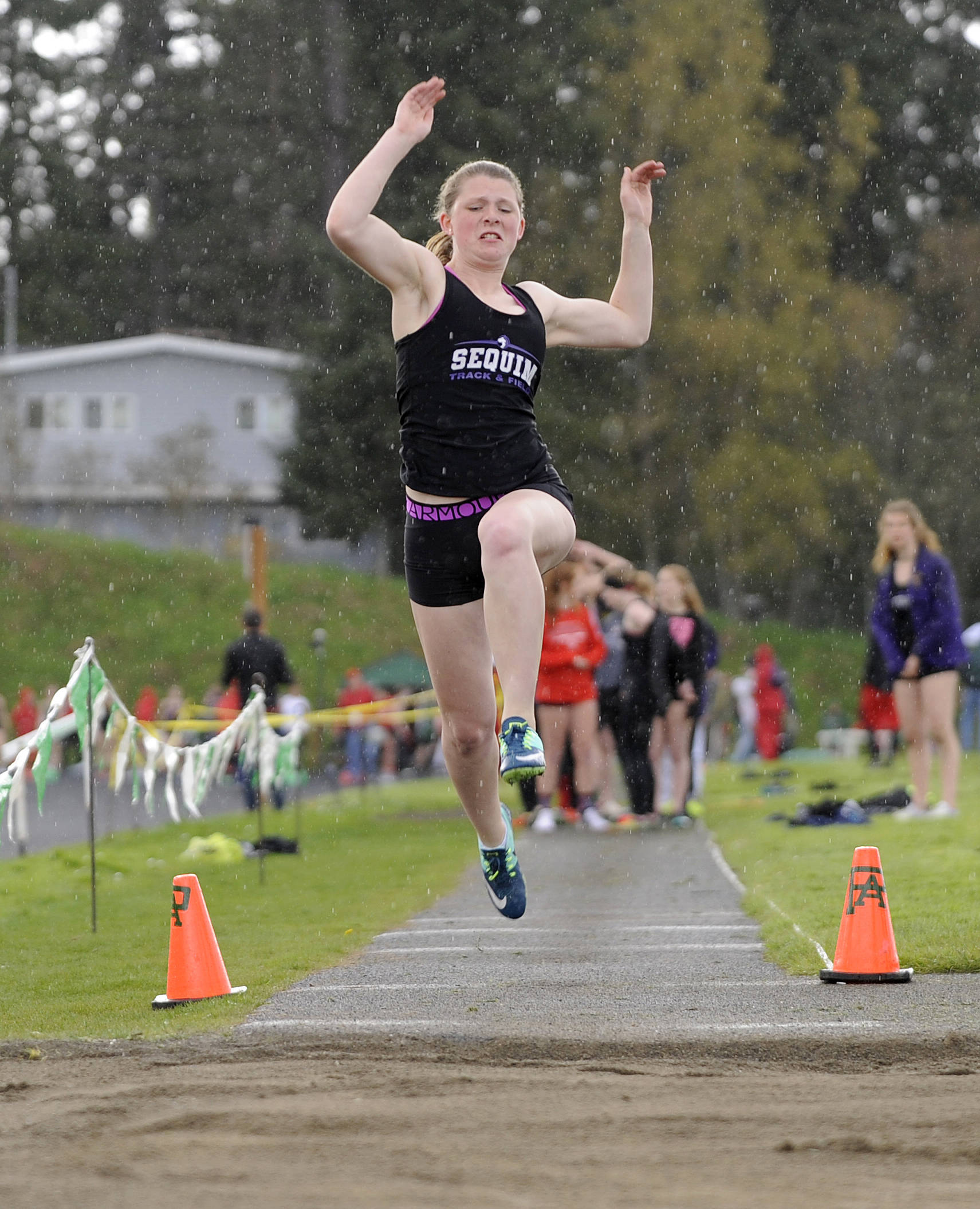 Sequim’s 4×100 relay team of Kristinna Barnet, Emma Beeson, Telicia Busby and Daisy Ryan took second in the 4×100 relay (54.35), as did Sequim’s 4×400 squad (Barnet, Ryan, Busby and Bingham) with a 4:38 effort.