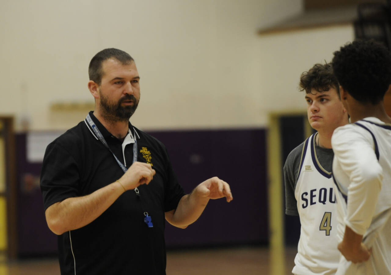As the first of Sequim’s hoops teams to take to the hardcourt, second-year head coach Craig Brooks said he liked what he saw from his team’s cohesiveness in a seven-point win at Klahowya. The Wolves had assists on more than half their baskets.