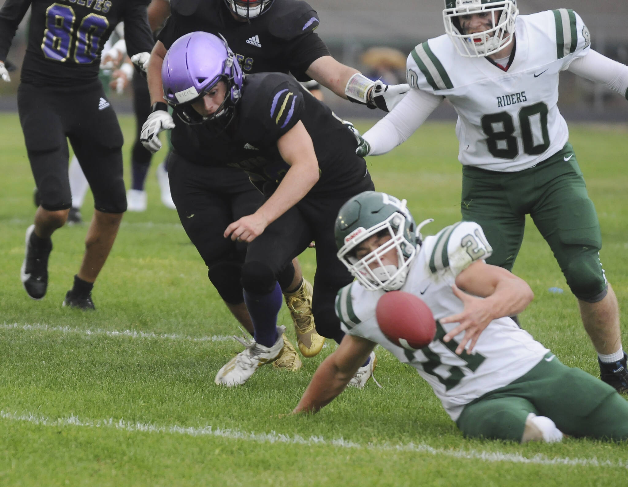 Port Angeles did force a defensive pass interference penalty on fourth down to get one last chance to move the chains and extend the game, but Parker Nickerson’s pass went through the hands of Riders’ receiver Ty Bradow.