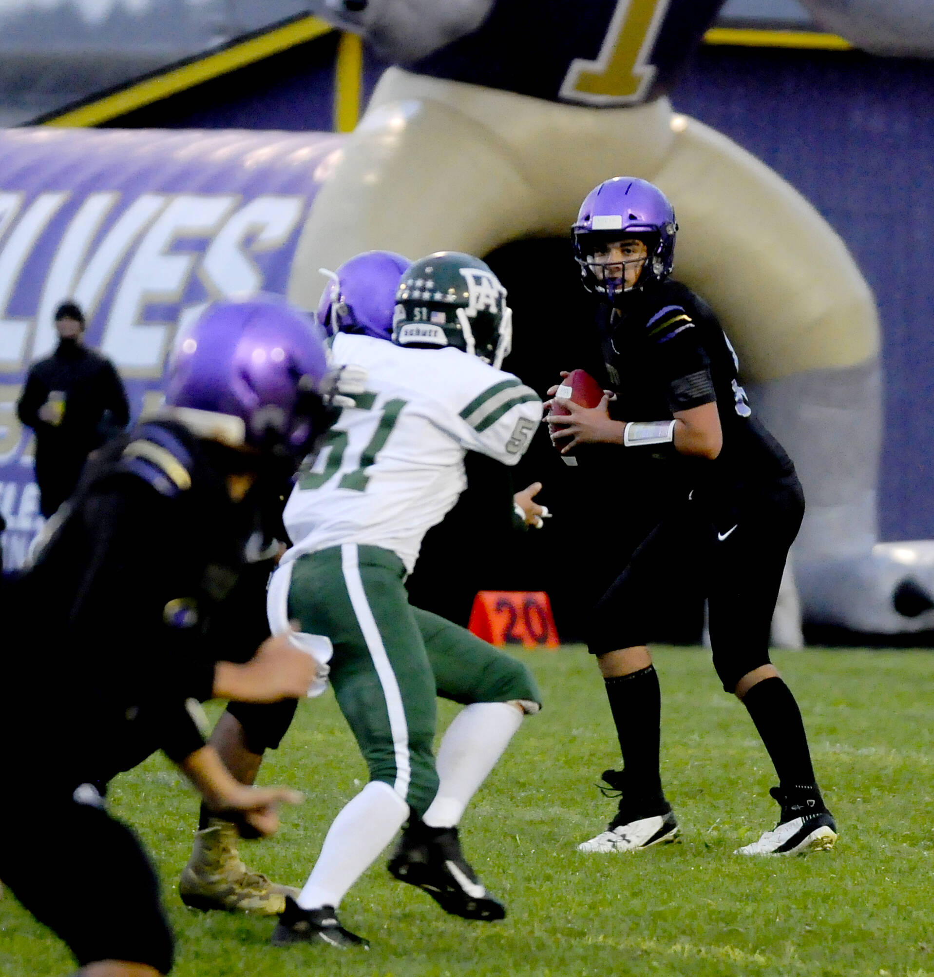 Blake Peterson also added a new angle to the Port Angeles running game, picking up 20 yards on five carries, including a 1-yard TD plunge, before getting injured in the second half.