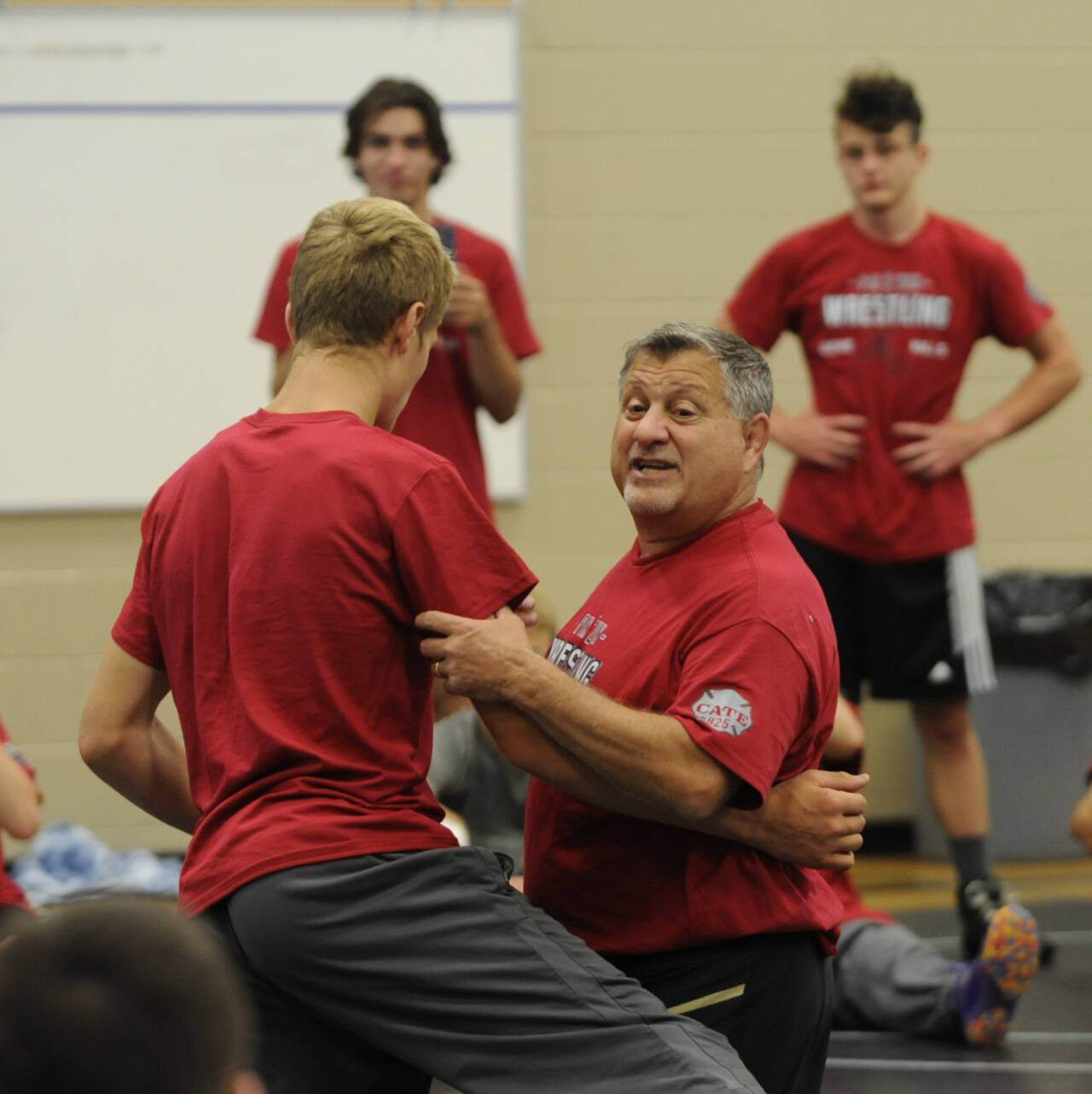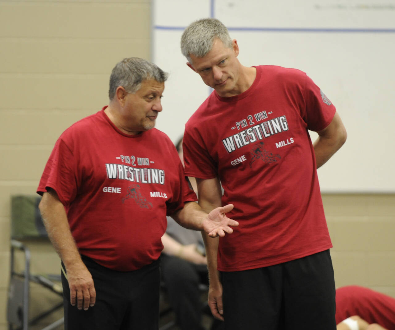 “Mean” Gene Mills, a former two-time NCAA champ who amassed a lifetime record of 1,356 wins (to 46 losses and a tie) and 886 victories by fall, was back in Sequim leading instruction, along with area high school coaches.