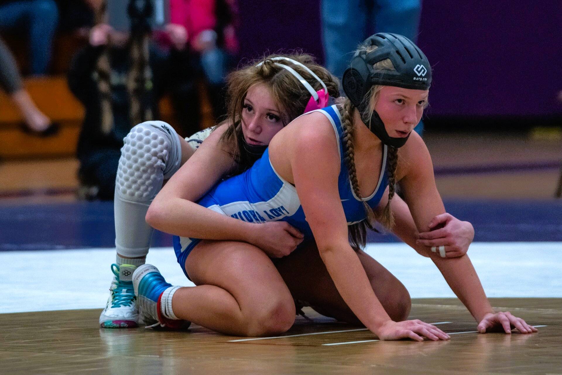 In the girl’s tournament, Sequim’s Bailey Stein won her 120-pound weight class with a first-round pin over Nyla Rios of Bremerton. Story Snow of Sequim was third at 115 pounds. They’ll both compete at state.